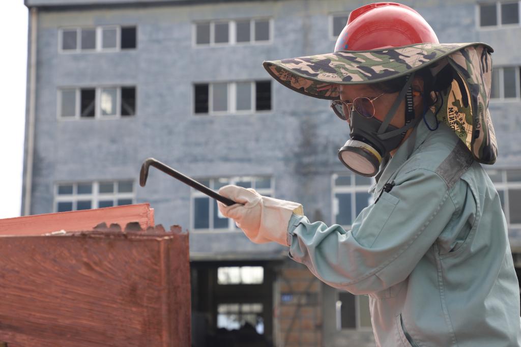 在一頂頂特殊的安全帽下,是一張張掛滿汗珠的臉龐;拉開口罩、取下護目鏡,個個都是溫柔的動人笑臉。她們每天與陰極銅板打交道,在產(chǎn)品運輸區(qū)域經(jīng)受著風吹日曬雨淋,每人佩戴的特殊安全帽因此而來,是質監(jiān)中心為了緩解每天八小時的戶外暴曬對姑娘們皮膚造成的傷害,踐行“我為群眾辦實事”承諾的體現(xiàn),也成為了銅業(yè)分公司質量監(jiān)測中心檢驗三組的標志。