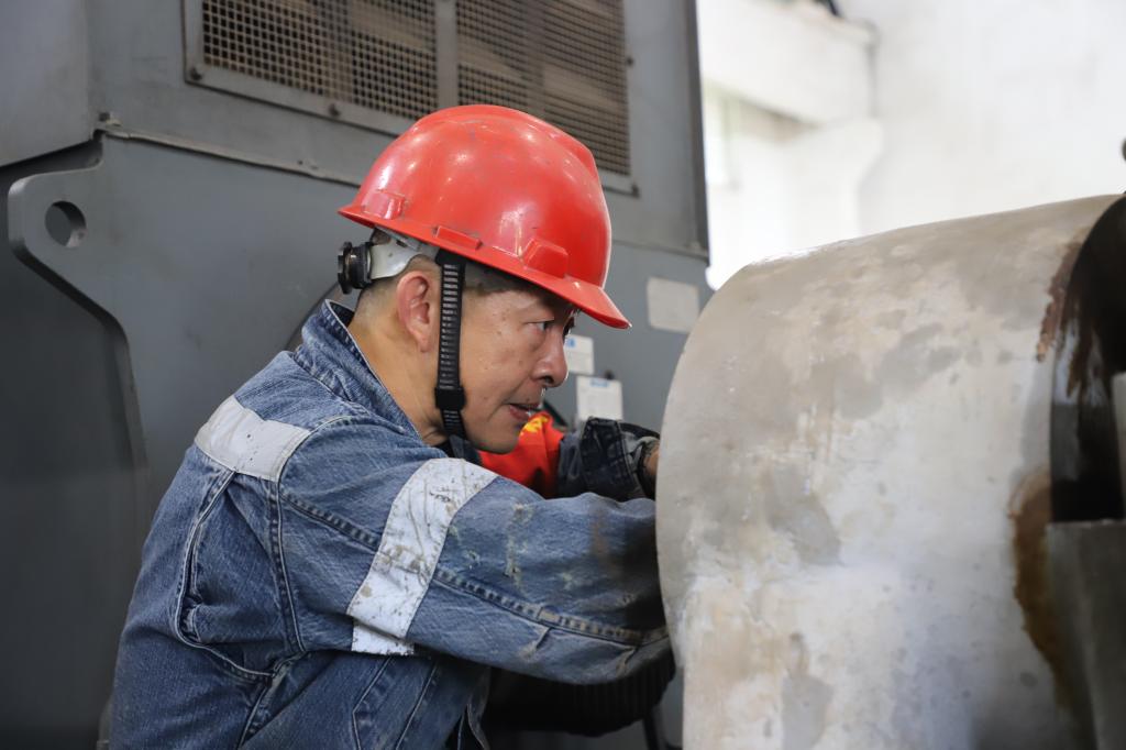李駿師傅在冶金爐窯修理的崗位上一干就是三十幾年。回憶自己的青春時(shí)光,李駿說,當(dāng)時(shí)同齡的黨員非常少,黨組織生活大都在晚上七點(diǎn)到九點(diǎn)這個(gè)階段,用業(yè)余時(shí)間開展黨內(nèi)學(xué)習(xí)。身邊的黨員同志,包括父親在內(nèi),個(gè)個(gè)能吃苦,干活任勞任怨,那種精神一直感染著他。對(duì)他來說,入黨的意義,既是年輕人的積極進(jìn)取,也是父輩榜樣力量的指引,更是艱苦奮斗的精神傳承。李駿是銅業(yè)分公司成立后的第一批員工,承擔(dān)著熔煉四座爐子的修理和八臺(tái)風(fēng)機(jī)的維護(hù)。從英格索蘭風(fēng)機(jī)到GD風(fēng)機(jī),他把每臺(tái)風(fēng)機(jī)的習(xí)性摸得透透的。“檢修一次,好好維護(hù),能保證爐子和全場(chǎng)各個(gè)用風(fēng)的系統(tǒng)順順利利開一年。”把風(fēng)機(jī)維護(hù)好并不是件容易事,李駿師傅輕松的話語里,透出的是責(zé)任和擔(dān)當(dāng)。