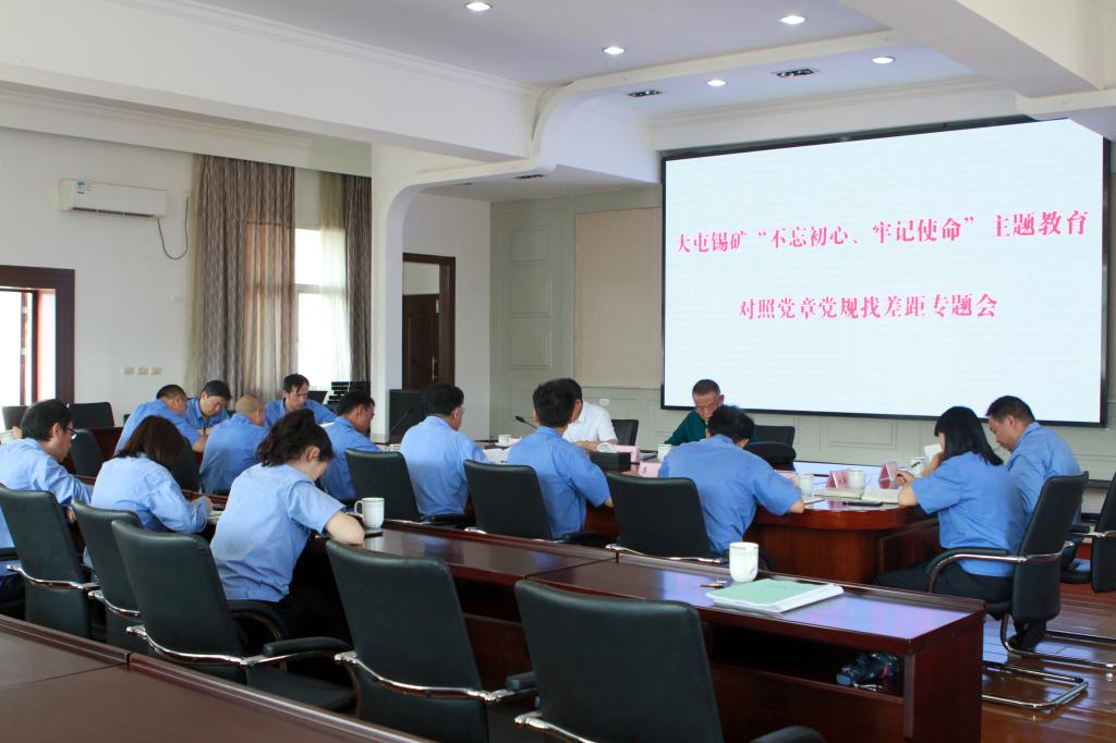 8月20日,大屯錫礦召開“不忘初心、牢記使命”主題教育對照黨章黨規找差距專題會,嚴格對照黨章黨規,以正視問題的自覺和刀刃向內的勇氣,全面深入開展“體檢”強黨性,檢視問題和不足,明確改進措施和方向。控股公司主題教育第七指導組組長湯發、副組長楊宏賢到會指導。