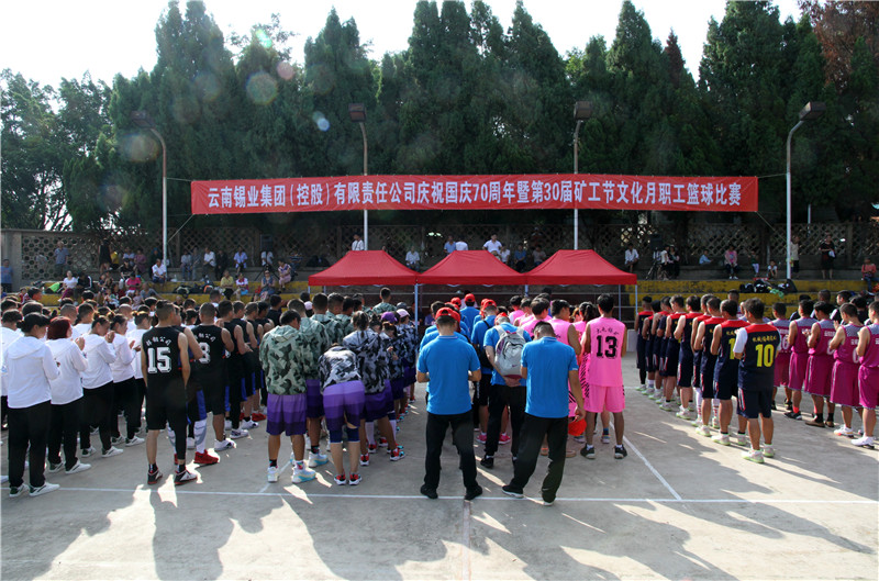 8月20日,控股公司慶祝國慶70周年暨第30屆礦工節文化月職工籃球比賽在大屯錫礦鳴鑼開賽,11支男隊和6支女隊將在為期一周的賽程內捉對比拼,盡顯競技運動的魅力。控股公司黨委常委、工會主席湯發,控股公司工會副主席、團委書記張弛,以及各單位工會主席,各單位參賽隊伍等200余人參加開幕式。