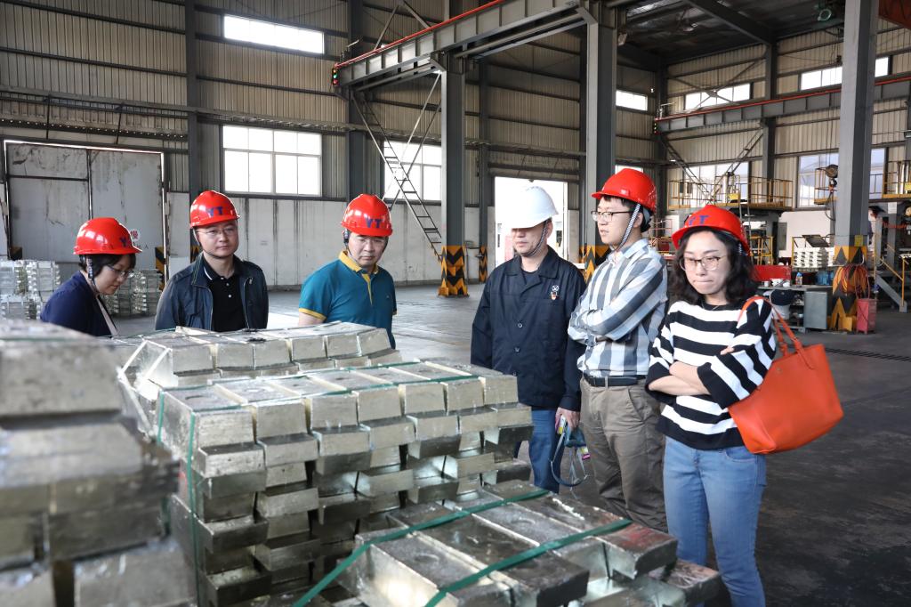 在冶煉分公司,王中奎、李冰心一行觀看了企業安全宣傳片,參觀了熔煉車間配料倉、反射爐舊址、頂吹爐主控室,精煉系統及錫庫,了解了經營理念、冶煉技術、產品質量等相關情況,對分公司嚴格的生產管控、優質的產品質量留下了深刻印象。