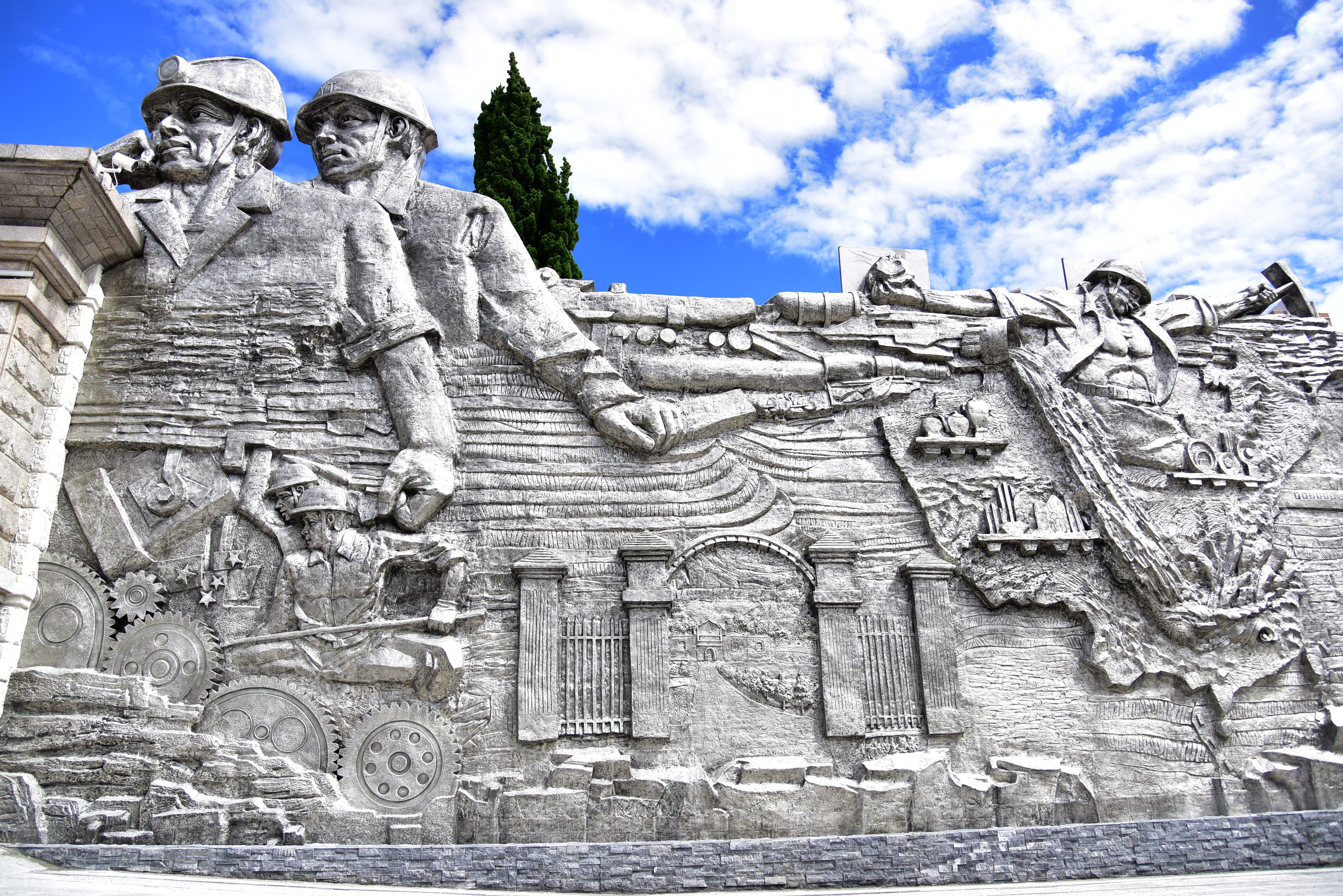 在設計方、施工方和云錫參建單位與制作人員的共同努力下,2021年10月,總長80米、平均高度5.4米的大型錫業文化主題群雕在個舊金湖東路云錫辦公大樓門口落成。