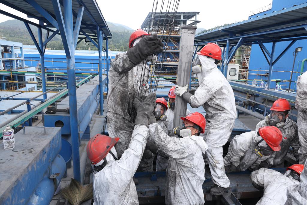 與往年不同的是,此次檢修本著“合理安排項(xiàng)目,縮短停產(chǎn)時(shí)間,細(xì)化檢修程序,確保檢修安全”工作思路,抓住關(guān)鍵環(huán)節(jié),加強(qiáng)部門聯(lián)動(dòng),建立完善重點(diǎn)項(xiàng)目推進(jìn)機(jī)制,切實(shí)做到急事急辦、特事特辦,確保實(shí)現(xiàn)“一次全面檢修,長(zhǎng)期平穩(wěn)運(yùn)行”目標(biāo),首次實(shí)現(xiàn)錫行業(yè)爆破拆除爐底爐瘤及耐火材料。