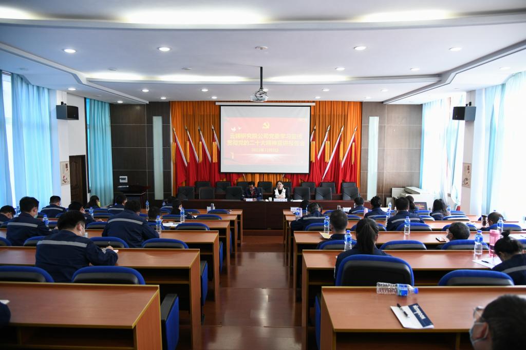 12月8日,控股公司黨委常委、組織人事部部長、錫業股份黨委書記、副董事長吳君到研究院公司宣講黨的二十大精神。