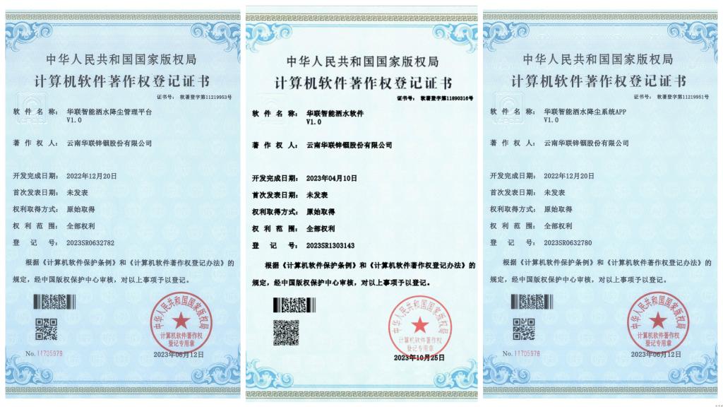 近日,云南華聯(lián)鋅銦股份有限公司“露天礦山粉塵監(jiān)測(cè)系統(tǒng)及智能規(guī)劃灑水降塵研究”科研項(xiàng)目管理軟件“華聯(lián)智能灑水軟件V1.0”獲國家計(jì)算機(jī)軟件著作權(quán)登記。