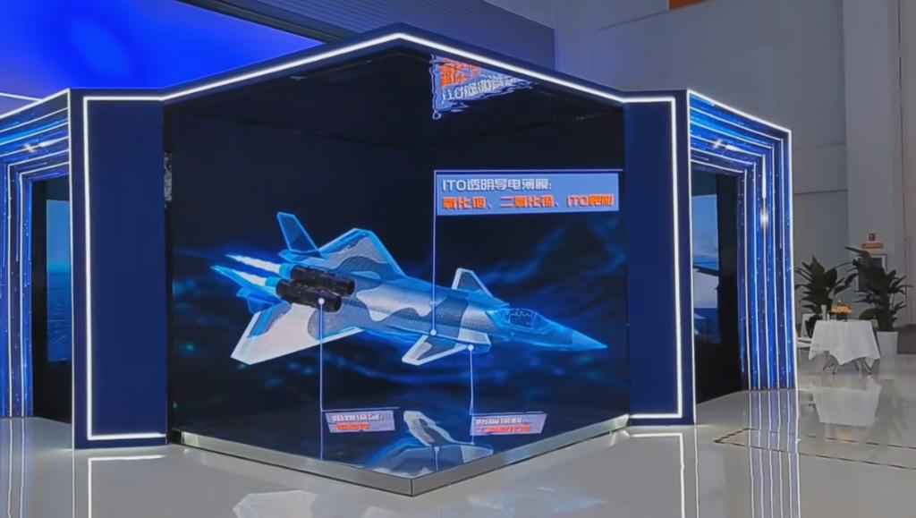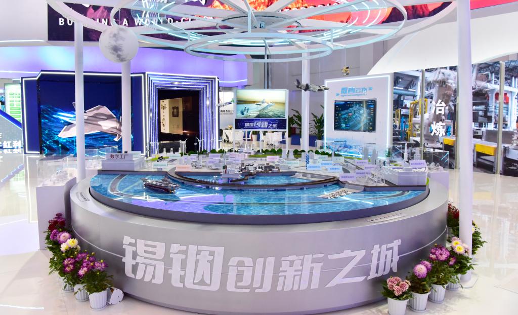 航母、衛星、智能機器人……裸眼3D折角屏以極具視覺震撼的特效,生動展示錫基、銦基合金在大國重器制造中的應用,成為制造業館的靚麗打卡點。