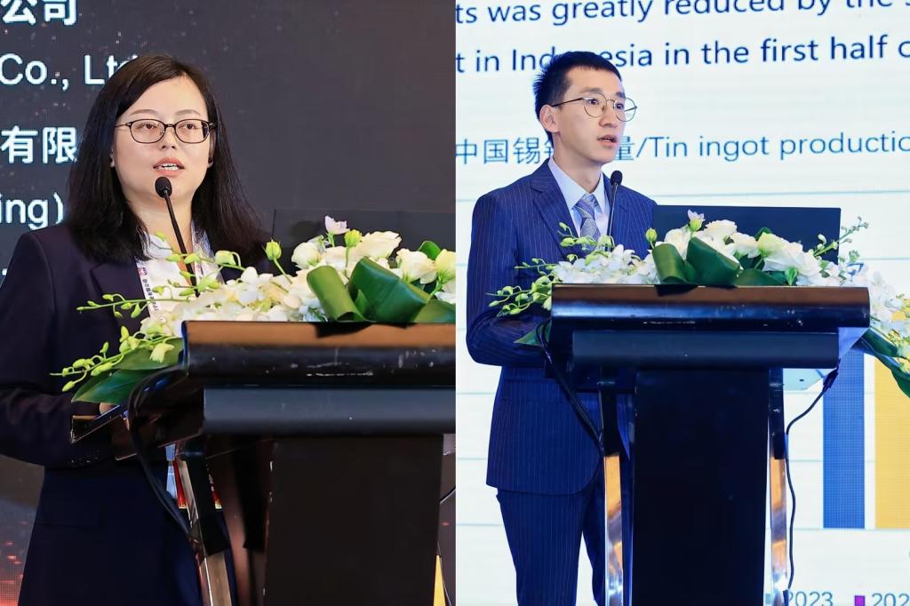 錫業(yè)股份審計風(fēng)控部經(jīng)理楊薇主持“可持續(xù)發(fā)展挑戰(zhàn)與機遇”環(huán)節(jié);錫業(yè)股份市場運營中心張哲語作《中國錫市場展望》報告。