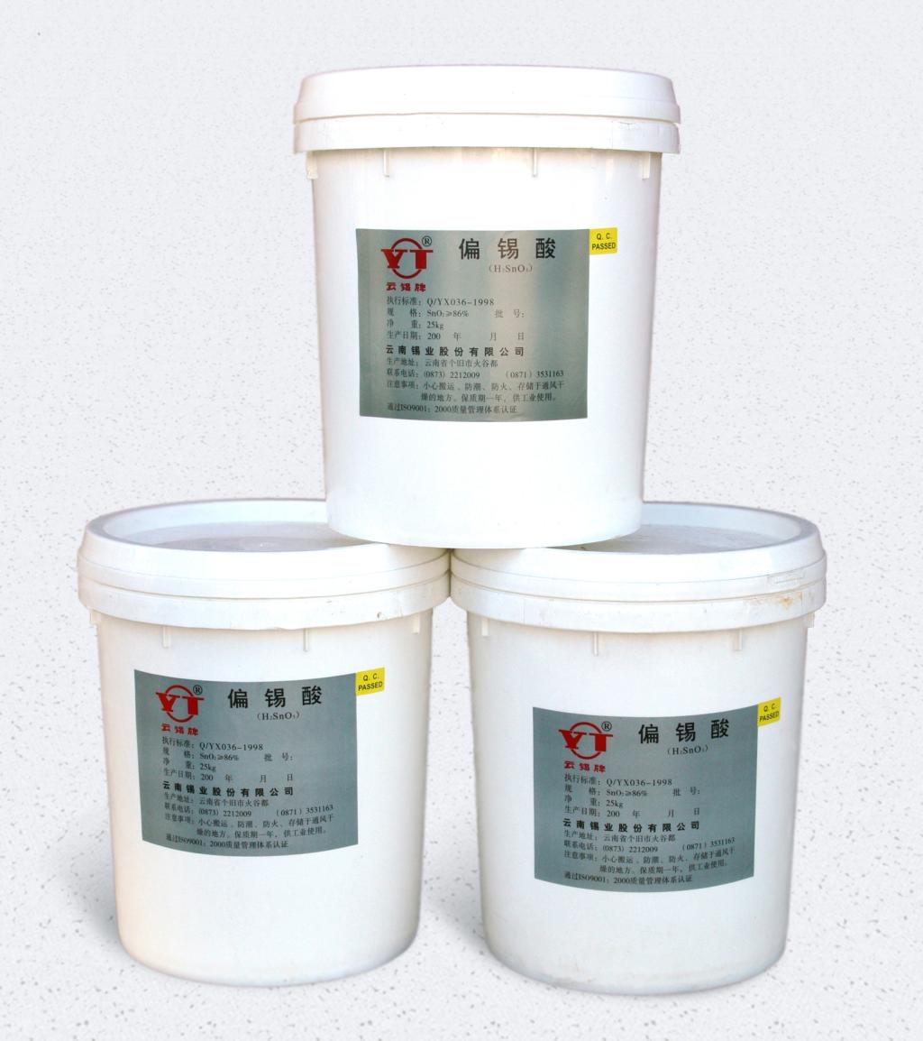 產(chǎn)品性狀:無定形白色粉末。不溶于水及醇,但溶于純堿和燒堿,在濃燒堿中呈懸浮偏錫酸,加水即成膠體溶液。