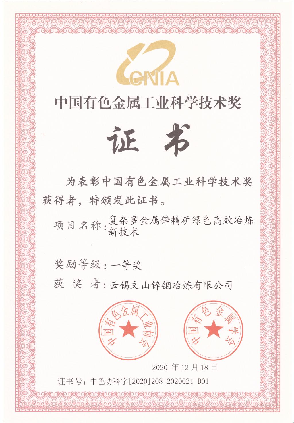 2020年,公司榮獲省部級科技進步獎一等獎1項。