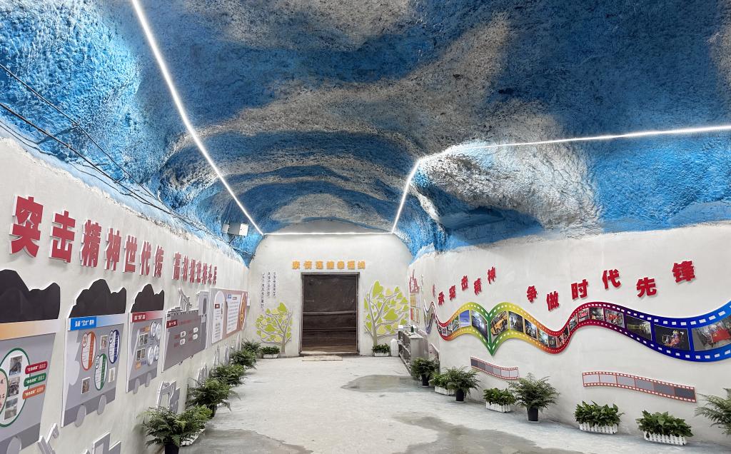 三坑二區黨支部深化政治引領構建思想教育的紅色高地,將原本位于地下1250米的閑置硐室改造為井下黨群活動陣地。活動陣地以藍天白云作為背景,突出二區黨支部黨建品牌“突擊精神世代傳,高效掘進排頭兵”,將黨建載體與入黨誓詞、主題黨日活動年度計劃、組織生活會制度、民主評議黨員制度、發展黨員工作流程圖和黨務公開欄有機相融。還設立榮譽墻、親情幸福線和安全生命線等特色展示內容,黨的理論著作和業務書籍能使干部員工能更方便地學習黨的理論、政策,提供了一個學習交流的平臺。同時再加以綠植裝點,使得活動陣地滿足了休息、學習、活動和會議等需求,實現了集“學習、工作、活動和展示”等功能為一體的創建目標。
