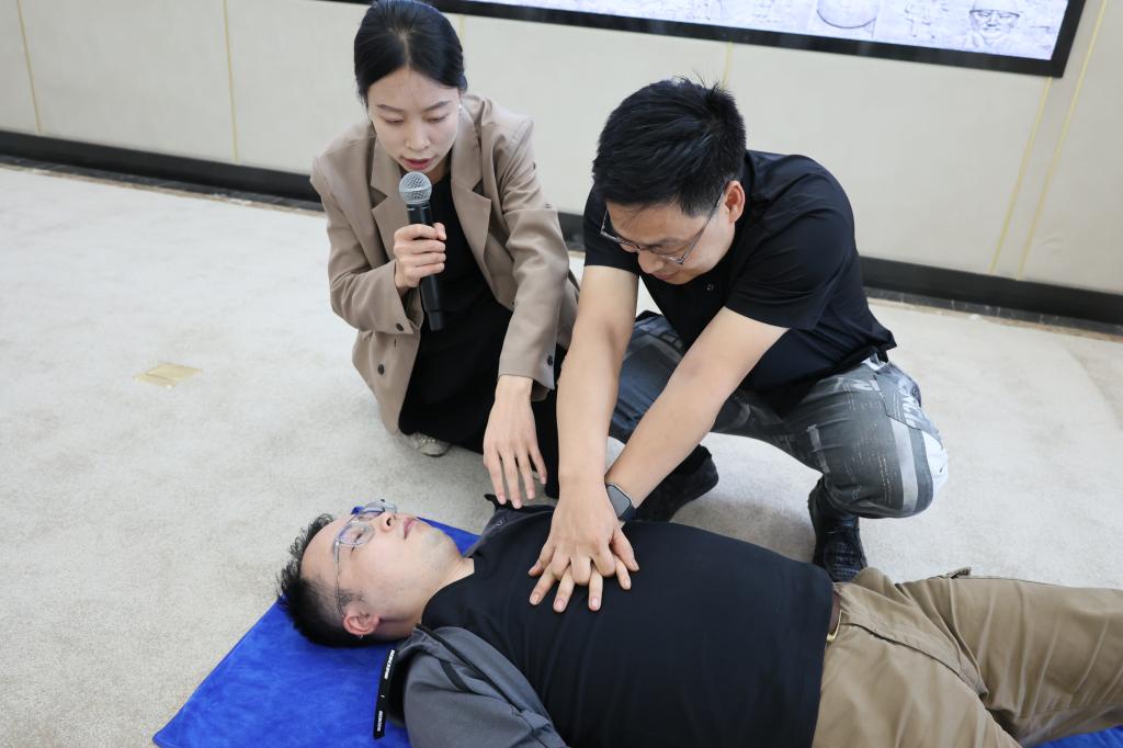 中醫康復研究院主治醫師李紅江圍繞順應春夏秋冬四時養生、日常穴位按摩保健、職場常見肩頸腰椎疼痛護理、高血脂高血糖高血壓基礎病預防、心梗腦梗應急處理等方面進行授課;針對如何把握“黃金時間”進行有效應急救護,現場演示海姆立克急救法、心肺復蘇等急救措施。