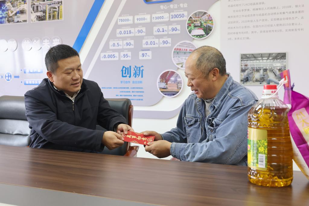 “過節(jié)好!提前給您和家人拜個年!”“現(xiàn)在身體怎么樣?”家里還有什么困難?“孩子還有幾年畢業(yè)?”……每到一處,聲聲問候,都如暖流般滋潤人心;句句關(guān)懷,盡顯情真意切。錫業(yè)股份領(lǐng)導班子成員與慰問對象及其家屬圍坐一團,親切交談,細致入微地詢問他們的身體狀況、生活情況等,細心聽取他們對公司發(fā)展的寶貴意見。公司領(lǐng)導感謝離休干部、老黨員為公司發(fā)展做出的貢獻,叮囑他們保重身體,享受健康生活;向辛勤付出和無私奉獻的勞模致以崇高敬意,希望他們繼續(xù)發(fā)揚模范帶頭作用,在技術(shù)創(chuàng)新、攻關(guān)創(chuàng)效方面發(fā)光發(fā)熱;鼓勵困難職工、困難黨員保持積極樂觀向上的精神狀態(tài),相信在企業(yè)大家庭的幫助下,日子會過得越來越好。