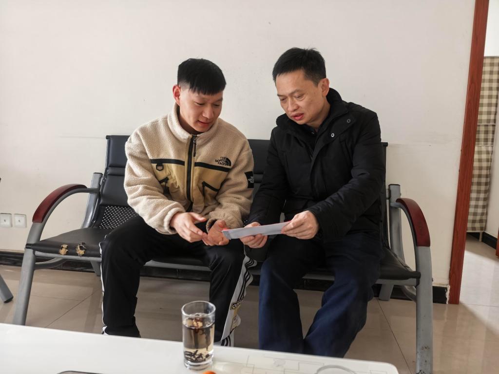 錫業(yè)股份黨委副書記、工會主席,華聯(lián)鋅銦黨委書記、董事長張揚慰問華聯(lián)鋅銦質(zhì)檢中心困難黨員周國彪