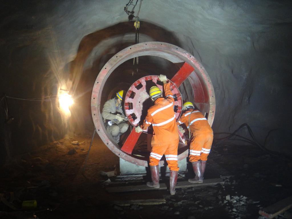 隨著高效采礦設備的不斷引進,井下通風系統建設成了急待解決的問題,為此,1540中段大箐東通風井安裝也就成了當務之急。2016年5月,1540中段大箐東通風井安裝工程緊張進行,所需安裝的設備中,250千瓦/時通風機9臺、1000KvA電力變壓器3臺,供電控制柜15面,其中單臺次設備重量達6噸,可以說重量重、體積大,面對坑下近10公里的漫長設備運輸線和安裝地點的有限空間,動力工段維修組的職工們,用巨人的意志和毅力,在近50個日日夜夜里揮灑汗水,通過不懈努力,按要求完成了安裝調試任務。